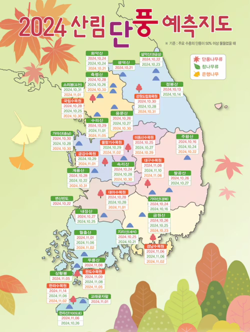 설악산의 단풍은 매년 가을, 수많은 관광객을 설레게 하는 자연의 선물입니다. 알록달록하게 물든 설악산의 가을 풍경은 그 자체로 감동을 선사하며, 산과 나무가 만들어내는 아름다운 색의 향연은 일상의 스트레스를 풀어주고 자연의 아름다움을 느끼게 해 줍니다. 2024년 설악산 단풍은 예년과 마찬가지로 10월 초순에 시작하여, 10월 중순인 20일 전후로 절정을 맞이할 것으로 예상됩니다.